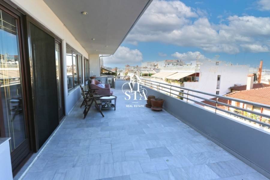 Το ακίνητο είναι διαμπερές και ιδιαίτερα φωτεινό, με μεγάλα ανοίγματα και τζαμαρίες στον ενιαίο χώρο σαλονιού και τραπεζαρίας, που επιτρέπουν στο φυσικό φως να πλημμυρίζει τον χώρο καθ’ όλη τη διάρκεια της ημέρας. Οι μπαλκονόπορτες οδηγούν σε μεγάλη βεράντα με μπάρμπεκιου και υπέροχη θέα, ιδανική για στιγμές χαλάρωσης και φιλοξενίας.