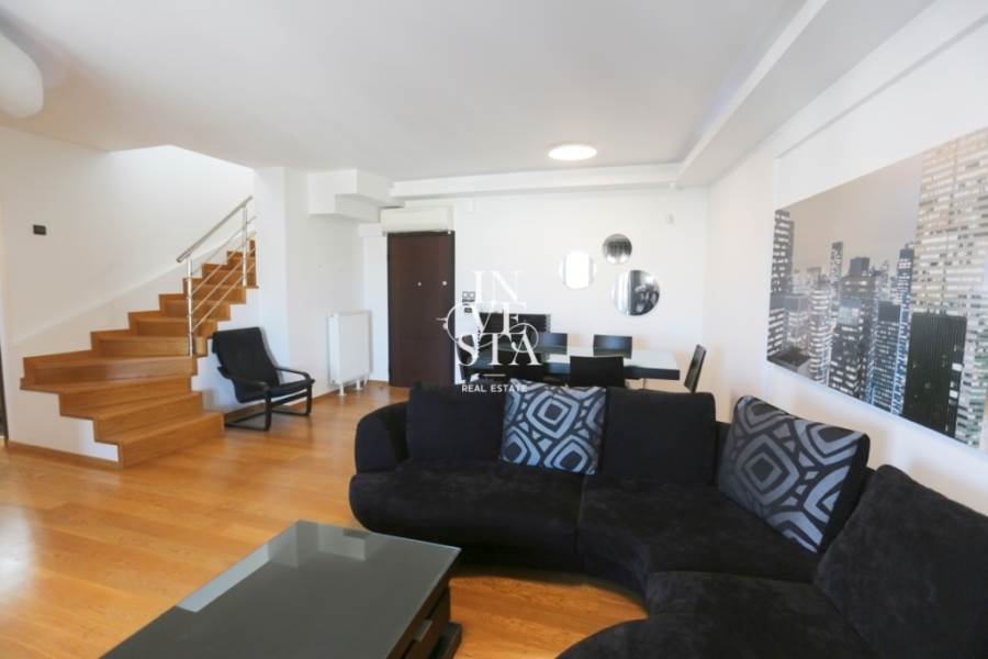 Το διαμέρισμα διαθέτει δύο άνετα υπνοδωμάτια στο πρώτο επίπεδο ενώ το μεγάλο master που ξεχωρίζει για την ευρυχωρία και την ιδιωτικότητά του βρίσκεται στον επάνω όροφο της μεζονέτας και διαθέτει δικό του μπάνιο και ένα μικρό κουζινάκι για να εξυπηρετεί λειτουργικά τον επάνω όροφο.