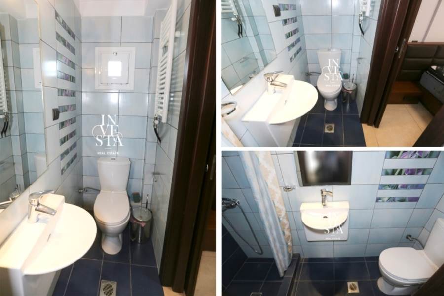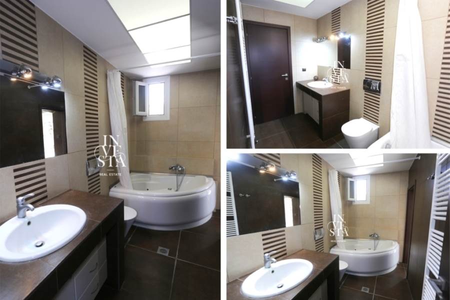 Το κυρίως μπάνιο είναι ευρύχωρο και κομψό, εξοπλισμένο με γωνιακή μπανιέρα, προσφέροντας ένα χώρο ιδανικό για χαλάρωση μετά από μια κουραστική μέρα.