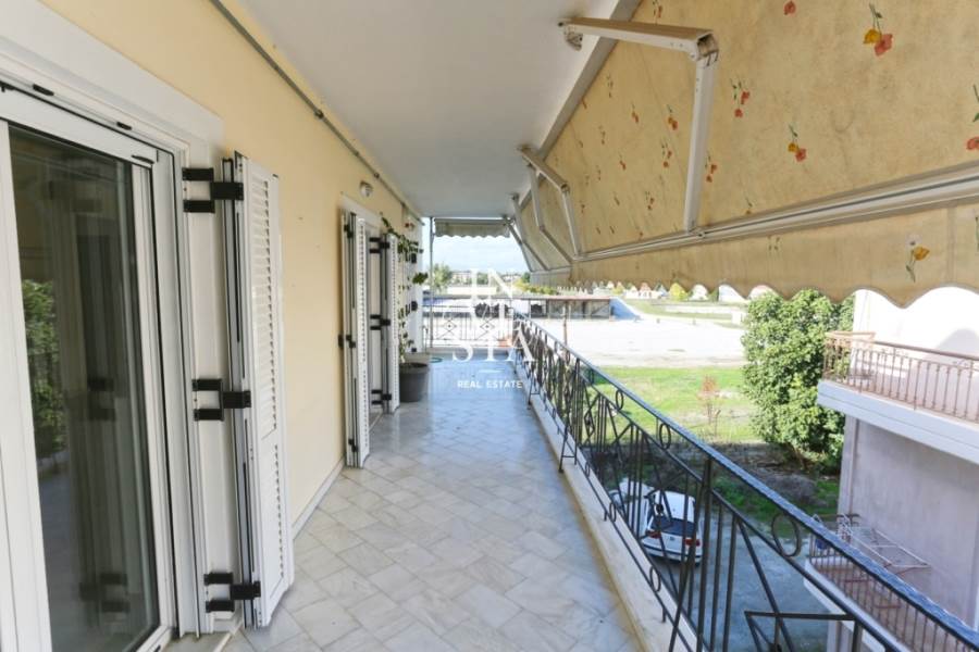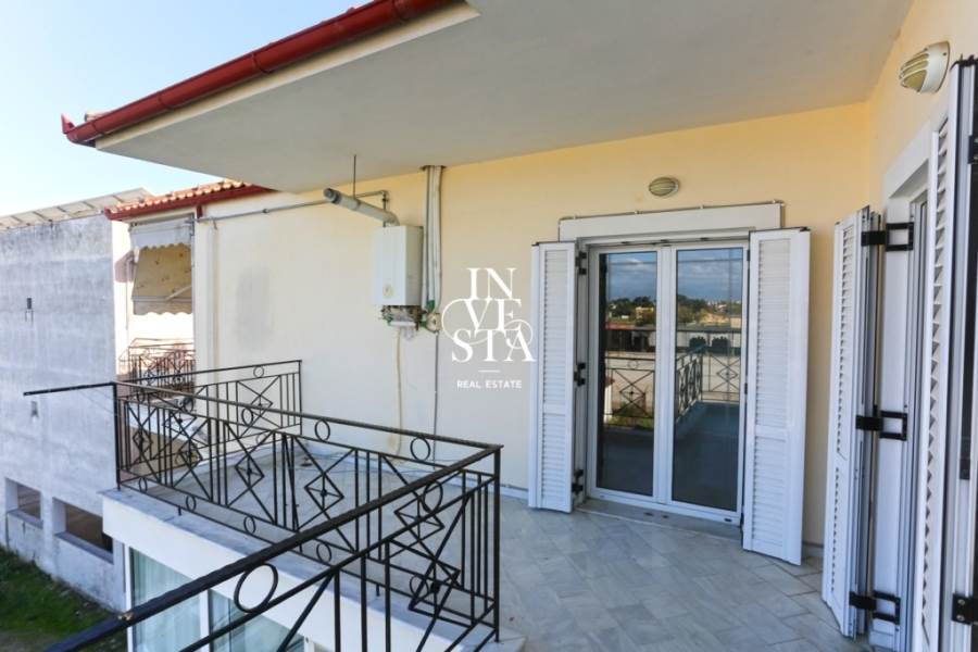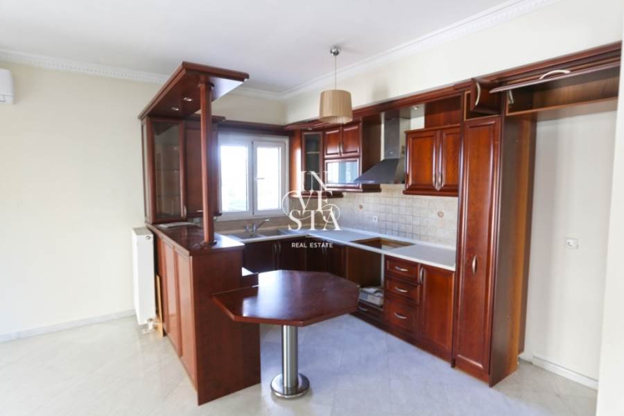 Η κουζίνα του, λειτουργική και άνετη για καθημερινή χρήση, ενώ η περιμετρική βεράντα αγκαλιάζει το διαμέρισμα και προσφέρει όμορφη θέα και φυσικό φως όλη τη μέρα - ιδανικό σημείο για τον πρωινό καφέ ή ένα ήσυχο βράδυ.