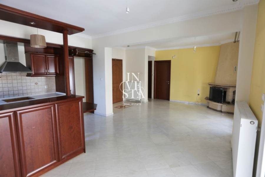 Ο ενιαίος χώρος σαλονιού και κουζίνας είναι ευρύχωρος, φωτεινός και ευχάριστος - ιδανικός για στιγμές χαλάρωσης ή φιλοξενίας, με το τζάκι να δημιουργεί μια ζεστή και φιλόξενη ατμόσφαιρα τις κρύες μέρες του χειμώνα.