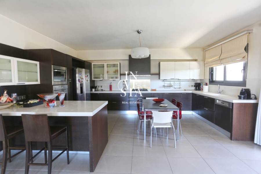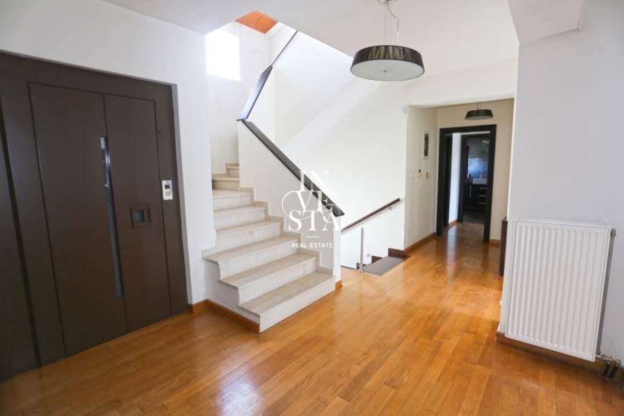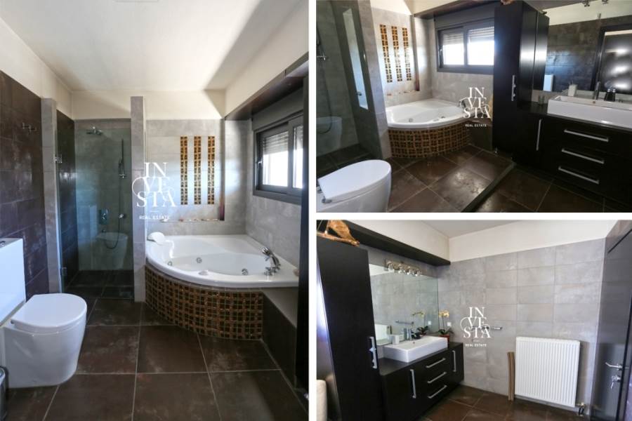 Throughout the house, emphasis has been placed on quality: the interior doors, wardrobes and frames are made of excellent materials, while the windows have electric roller shutters. Heating is carried out via natural gas, with automatic heating zones and separate thermostats, offering full control and flexibility. There is air conditioning installed in all areas, while the existence of an elevator makes movement between all levels easy and comfortable for everyone.