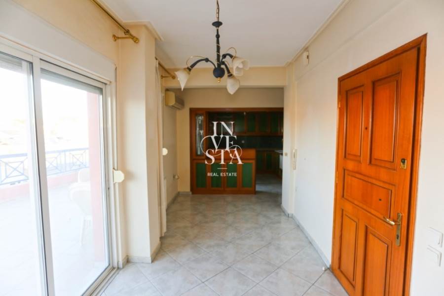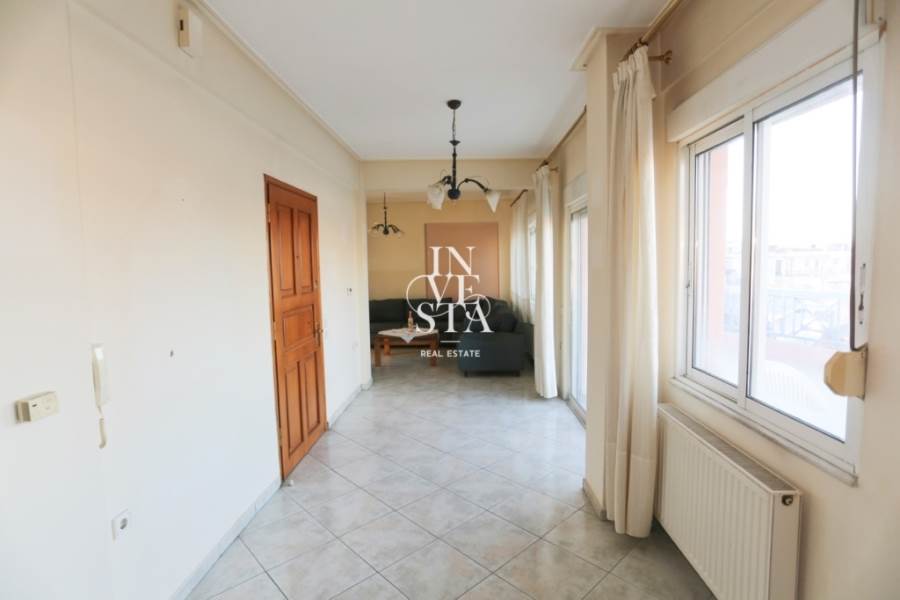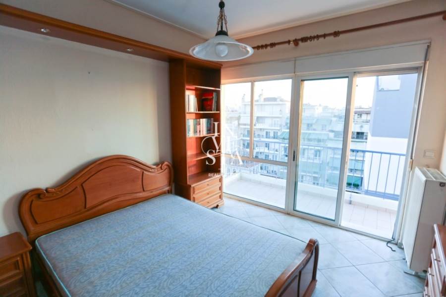 The property is located on the 6th floor and is airy and particularly bright, with an excellent flow of natural light throughout the day. Entering the house, we find the living room on the left, which offers a warm and welcoming atmosphere, while to the right of the entrance is separated by a folding door the comfortable kitchen. Proceeding to the hallway that leads to the rest of the house, we find the two spacious bedrooms and the bathroom.