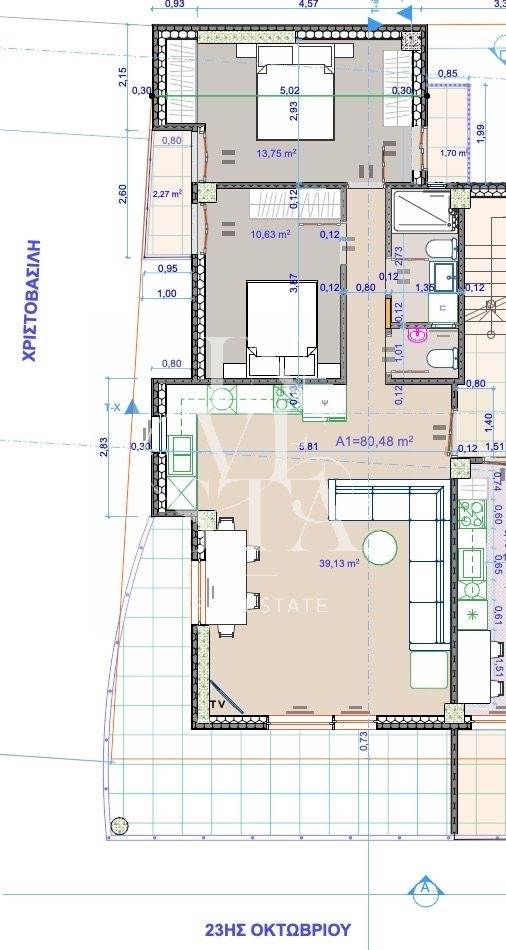 Agios Konstantinos: In a quiet neighborhood near the city center, a 1st floor apartment of 80 sq m is for sale in a building under construction, which will be completed in the summer of 2026.